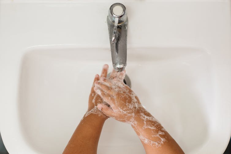 Sneezing or coughing into your hands also requires more than just a pump of hand sanitiser to disinfect them. This is because if your hands are contaminated with mucous, the hand sanitiser might not work as well because mucous acts to protect microbes.